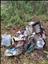 Spr- kontin takaa lähtevän polun alkupäästä. 5 jätesäkillistä metsästä löytynyttä muovi- ja tekstiilijätettä,