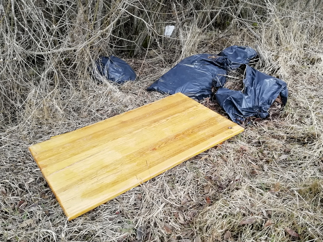 Kuvassa näkyvät roskat on jätetty kartassa merkittyyn kohtaan. Pyydän, että ne siivotaan pois mahdollisimman pian.