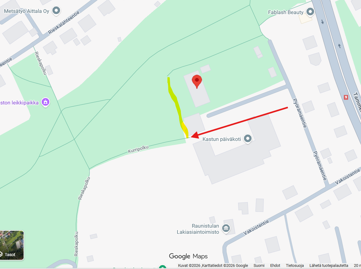 Moi. Voisiko tämän kyseisen pätkän (merkitty keltaisella kuvaan) aurata koska tässä on yleistä liikettä ja traktori ajaa tästä läpi aura ylhäällä ja alkaa sitten auraamaan kurripolkua. Kiitos