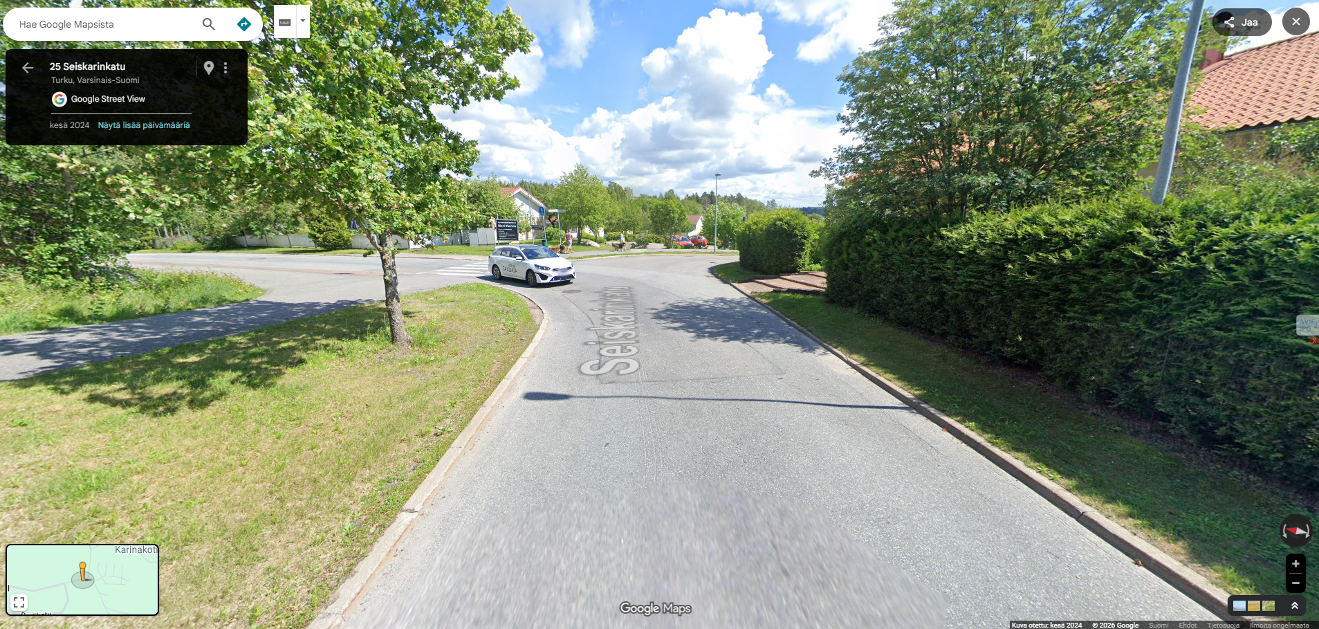 Ehdotan kärkikolmion asentamista seikarinkadun sekä verkkokujan risteykseen verkkokujan puolelle. Risteys on todella vaarallinen johtuen suuresta kuusiaidasta joka estää oikealle näkemisen kokonaan aiheuttaen vaara tilanteita suurelle osaa ihmisiä jotka menevät meri kaarinan palvelutaloon sekä kirkkoon.