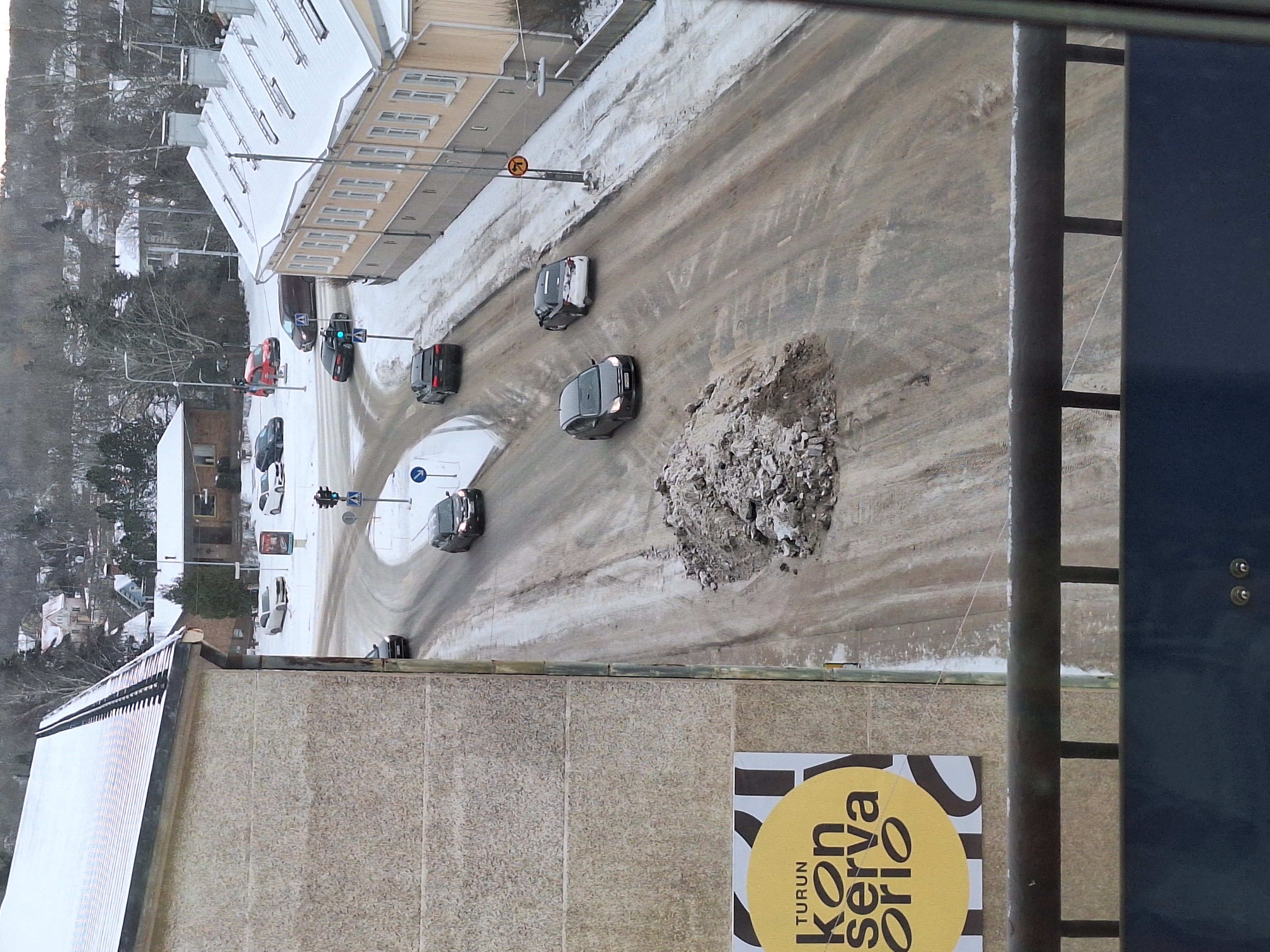Kuninkaankartanonkadulla konservatorion edessä oli tällainen mielenkiintoinen aurausratkaisu tänään (12.2.2026).