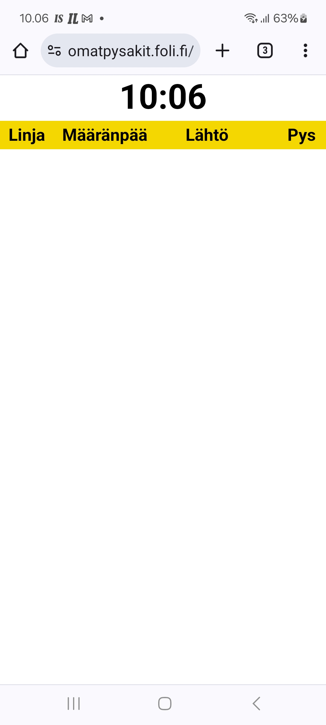 Hei Miksi aina on vika pysäkki aikataulu olin vikä Perjantaina mutta myöhemmi toimi taas ei toimin https://omatpysakit.foli.fi/?stops=100&bundle=0&pagerows=16 VOISINKO SAA KUNTO KIITOS ?