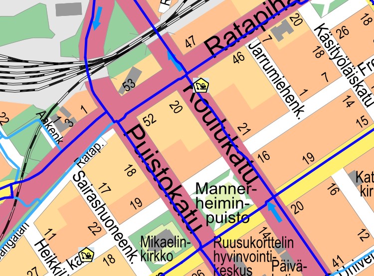 Destia oy:lle on myönnetty kaivuulupa (tunnus: 853-2025-694) Koulukadulle lähelle Ratapihankadun risteystä. Työmaan takia pyörätie on suljettu niin, ettei Koulukatua pääse enää ajamaan Ratapihankadulta Aurajoen suuntaan. Pyöräilijä joutuu kiertämään kokonaisen korttelin työmaan johdosta. Turun kaupunki on sitoutunut vahvasti pyöräliikenteen kehittämiseen osana kestävän kaupunkiliikkumisen ja ilmastotavoitteiden edistämistä. Tällainen ratkaisu sulkea pyöräily kokonaan väylältä ei ole tavoitteen mukainen. Koulukadulla kulkee 3 ajorataa. Miksi kaivuuluvassa ei ole edellytetty, että yksi näistä ajoradoista toimisi tilapäisenä pyörätienä?